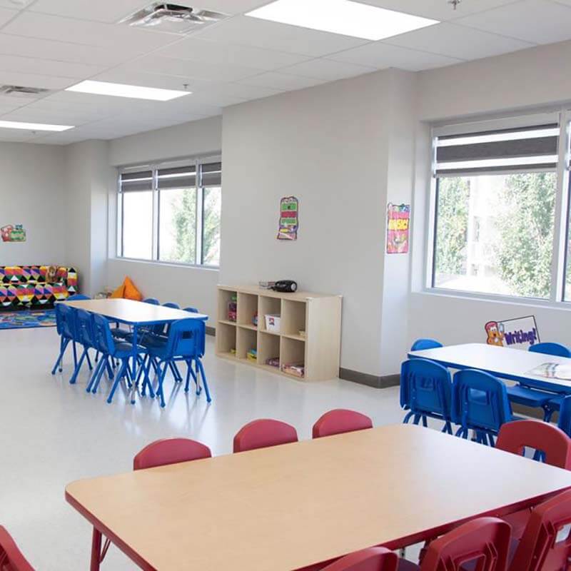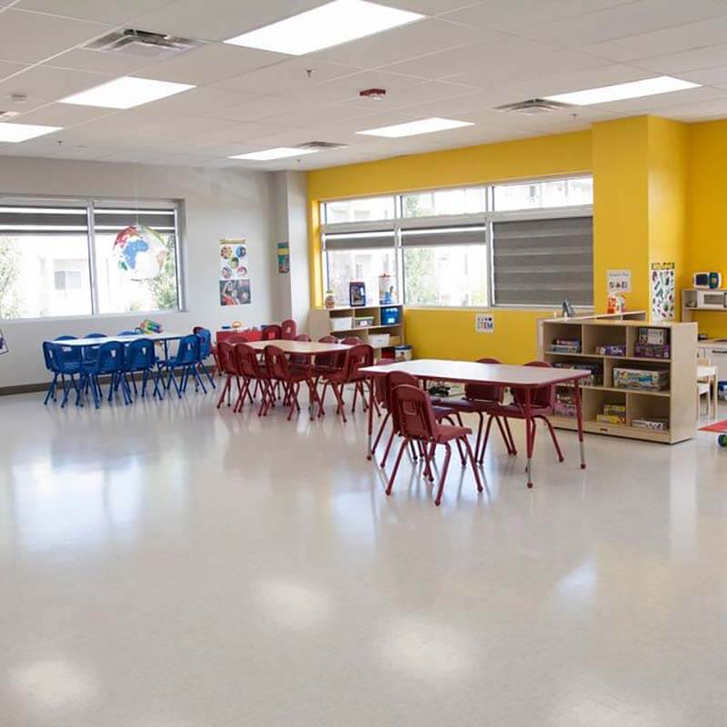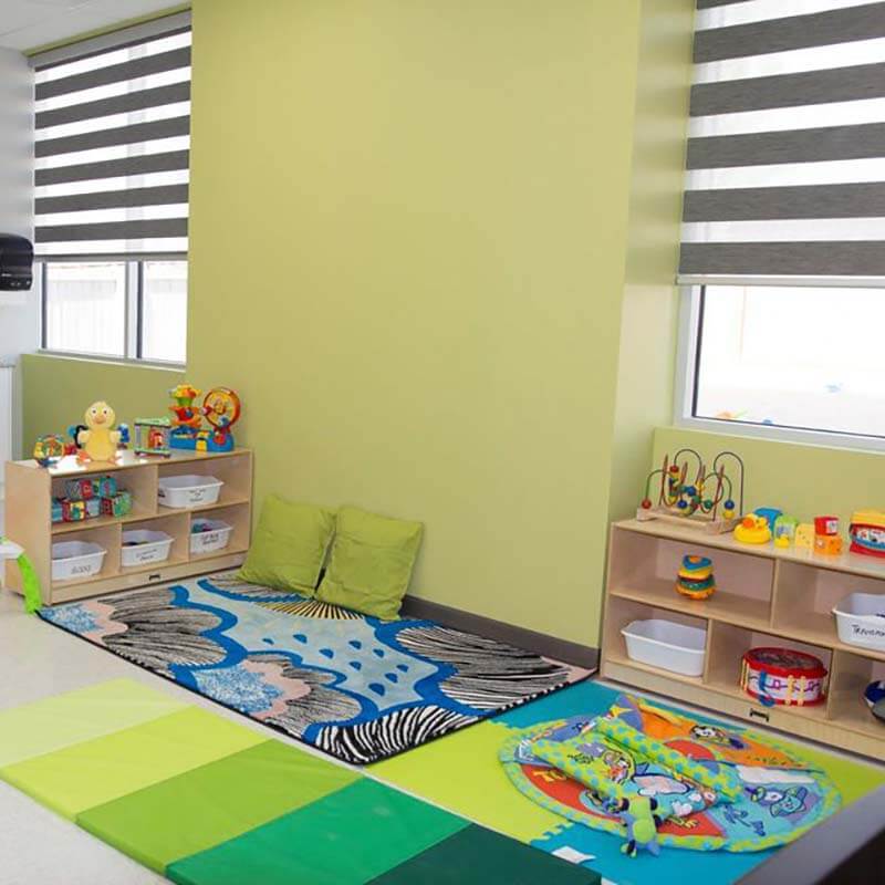 The childcare was designed keeping the environment and safety of kids as a priority. The rooms use sound insulation. Access to the childcare is secured using card readers. The childcare has 6 large rooms, a staff room and a laundry.